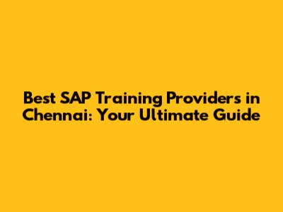 Best SAP Training Providers In Chennai