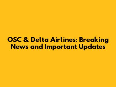 Breaking: OSC & Delta Airlines News And Updates