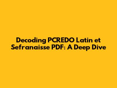 Decoding PCREDO Latin Et Sefranaisse PDF: A Deep Dive