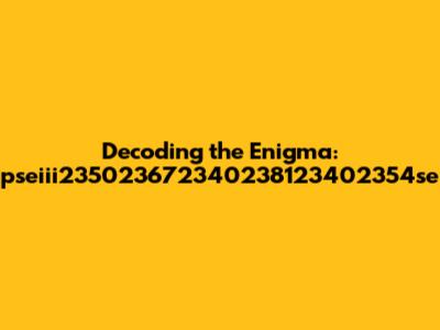 Decoding The Enigma: Pseiii235023672340238123402354se