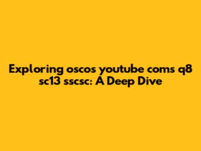 Exploring Oscos Youtube Coms Q8 Sc13 Sscsc: A Deep Dive