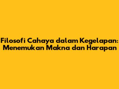 Filosofi Cahaya Dalam Kegelapan: Menemukan Makna Dan Harapan