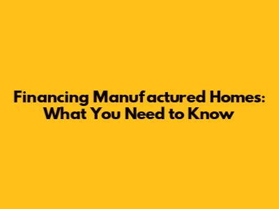 Financing Manufactured Homes: What You Need To Know