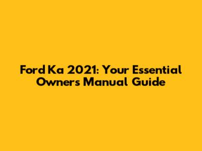 Ford Ka 2021: Your Essential Owner's Manual Guide