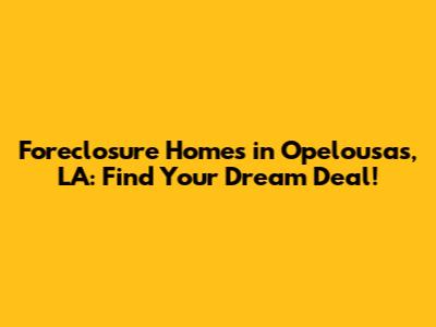 Hey guys! Are you on the hunt for a sweet deal on a new home in Opelousas, Louisiana? Well, you've come to the right place! Diving into the world of foreclosure homes can be a fantastic way to snag a property for less than market value. But, it's essential to arm yourself with the right knowledge and approach. Let's break down everything you need to know to navigate the foreclosure market in Opelousas like a pro.