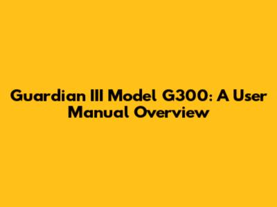 Guardian III Model G300: A User Manual Overview