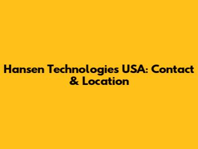 Hansen Technologies USA: Contact Information Essentials