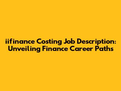 Iifinance Costing Job Description: Your Guide To Finance Roles