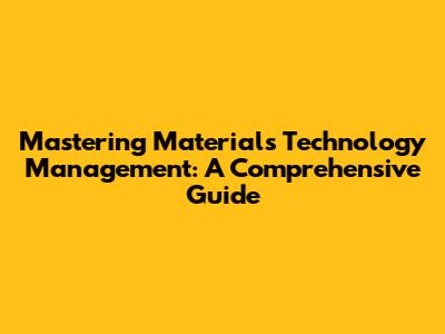 Mastering Materials Technology Management: A Comprehensive Guide