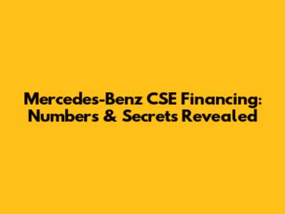 Mercedes-Benz CSE Financing: Numbers & Secrets Revealed