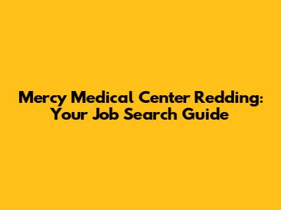 Mercy Medical Center Redding: Your Job Search Guide