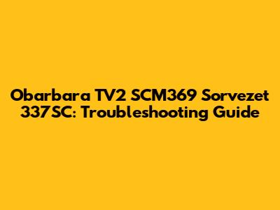 Obarbara TV2 SCM369 Sorvezet 337SC: Troubleshooting Guide