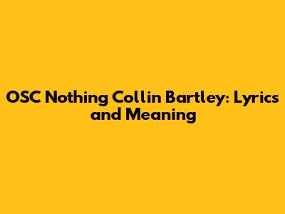 OSC Nothing Collin Bartley: Lyrics And Meaning
