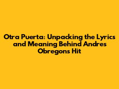 Hey music lovers! Ever found yourself completely captivated by a song, its melody, its lyrics, and the raw emotion it conveys? Well, Andres Obregon's Otra Puerta is one of those songs that has that kind of effect. This track is more than just a catchy tune; it’s a powerful narrative wrapped in beautiful music. Let's dive deep into the lyrics and uncover the rich tapestry of meaning woven into Otra Puerta.