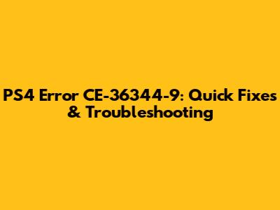 PS4 Error CE-36344-9: Quick Fixes & Troubleshooting