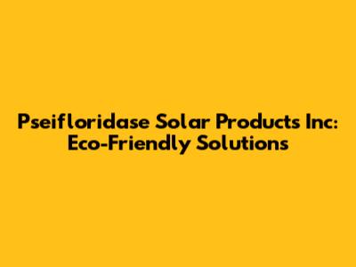 Pseifloridase Solar Products Inc: Eco-Friendly Solutions