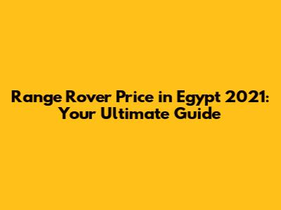 Range Rover Price In Egypt 2021: A Comprehensive Guide