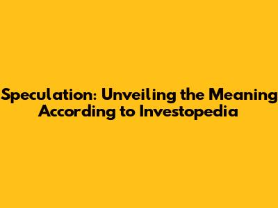 Speculation: Unveiling The Meaning According To Investopedia