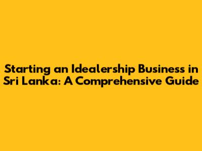 Starting An Idealership Business In Sri Lanka: A Comprehensive Guide