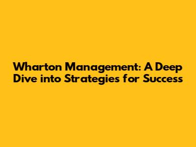 Wharton Management: A Deep Dive Into Strategies For Success